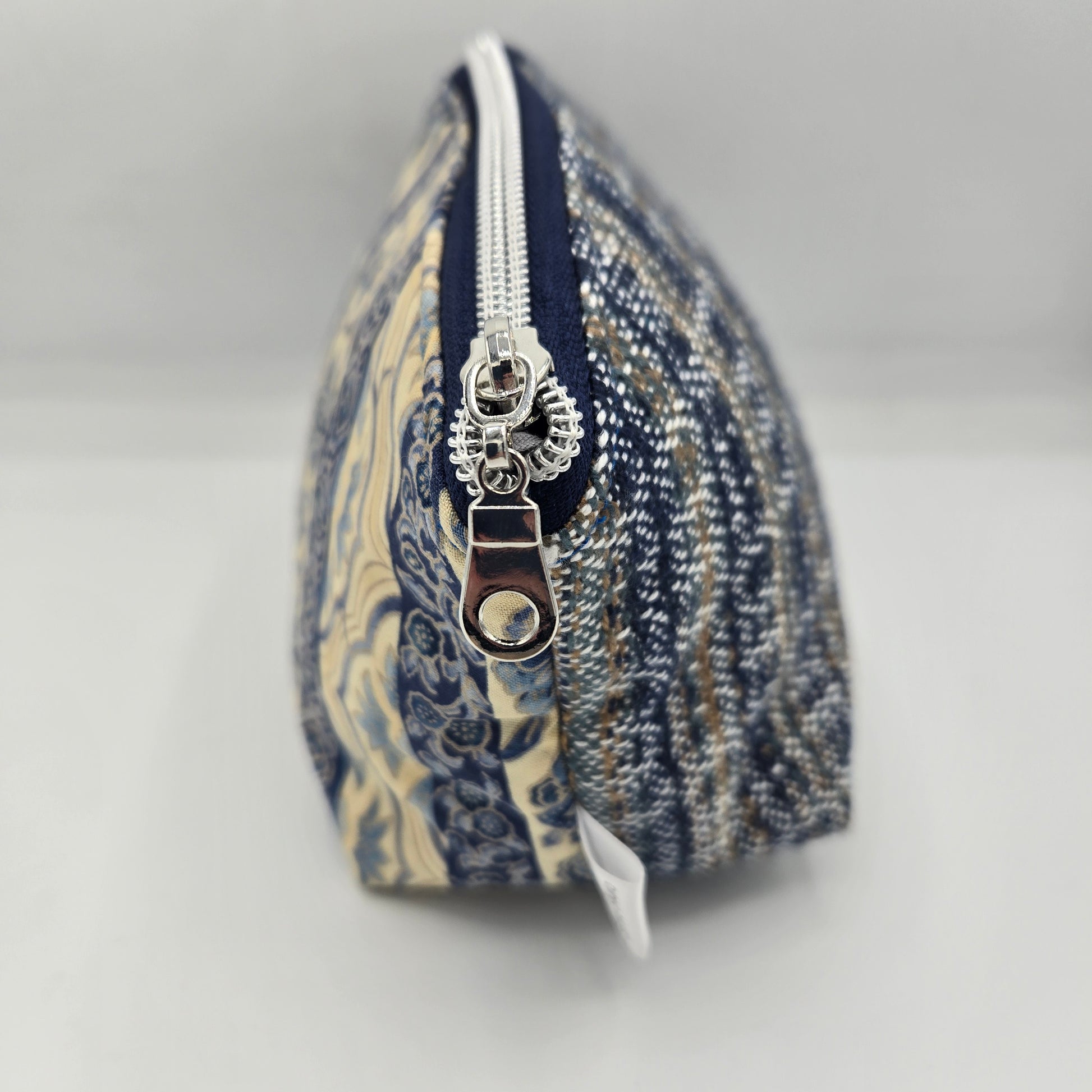Curved Zipper Bag | Handwoven + Cotton | Navy and Gold Floral | Medium