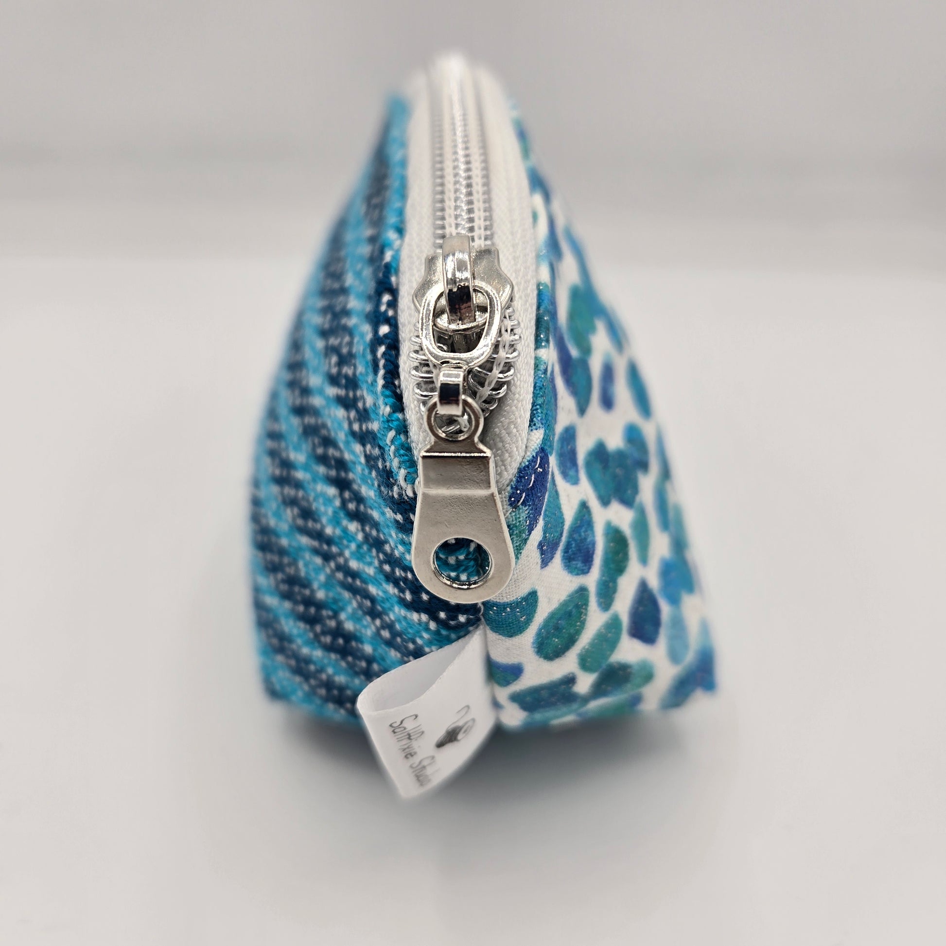 Curved Zipper Bag | Handwoven + Cotton | Navy Turquoise Stripes & Bubbles | Small