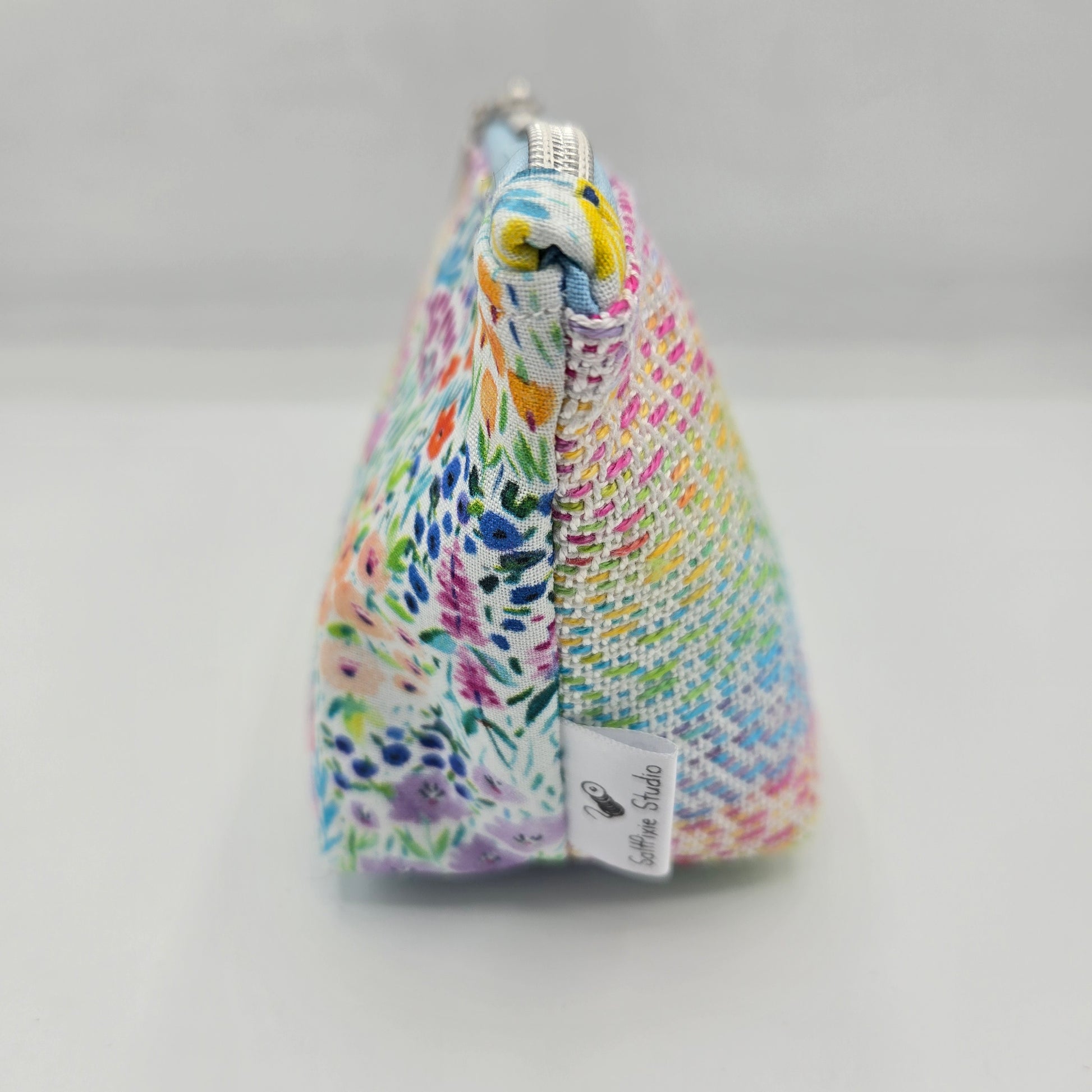 One of a kind zipper pouch, perfect for organizing your bag or your coins, or for gifting! Made with gorgeous handwoven fabric split with a beautiful quilters cotton and lined with lovely lining cotton.